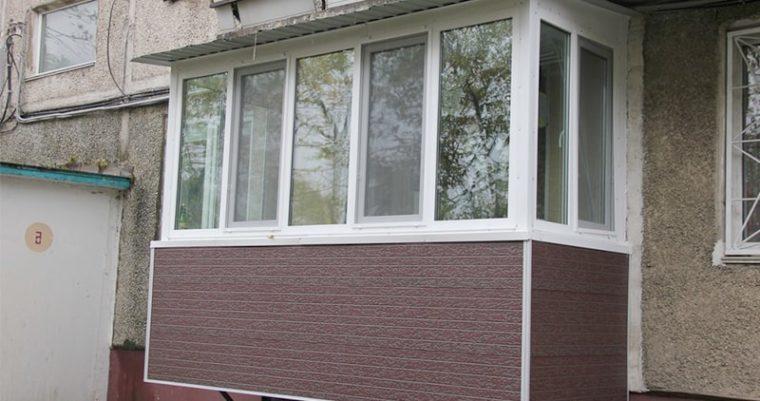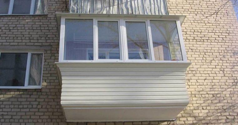 При остеклении балкона с выносом внешней облицовке предшествует покрытие всей металлической конструкции антикоррозийным составом. В зависимости от материала парапета вы можете облицевать его сайдингом ПВХ или оцинкованным железом, если парапет бетонный. Предварительно выполняется обрешетка с шагом 50 см.