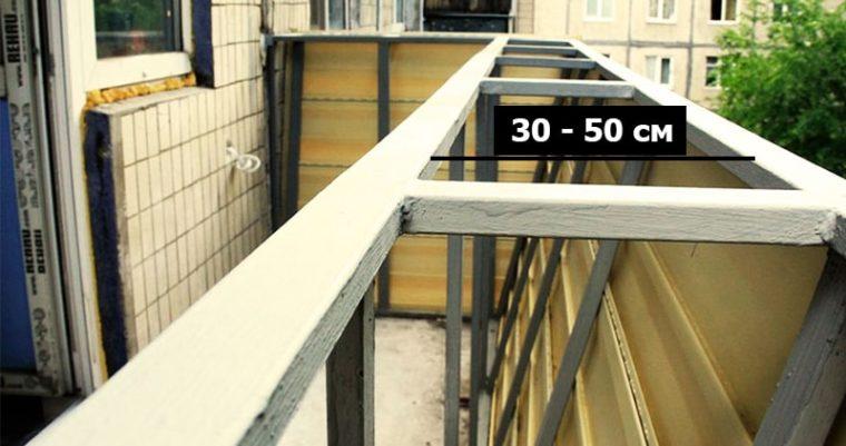 Чтобы расширить основание, необходимо демонтировать существующий парапет, нарастить плиту и усилить ее специальными швеллерами. Затем следует выварить новый каркас, обшить его снаружи и тщательно утеплить внутри.