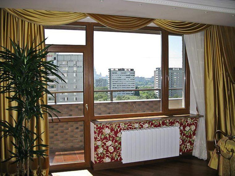 Если же балкон остеклен, то можно сделать более простую входную форму между ним и комнатой. Достаточно установить глухие окна с однокамерным или двухкамерным стеклопакетом и дверь с возможностью проветривания. На всю длину двери рекомендуется сделать стеклопакет: он визуально будет увеличивать размеры комнаты.
