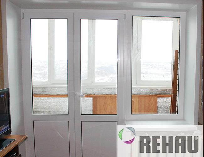 Конструкция состоит из двери балкона и окна. Последних может быть несколько. Эта система цельная, поэтому помогает сохранить тепло и не пропускать пыль с улицы. (подробнее про балконную дверь из профиля Rehau читайте в этой статье)