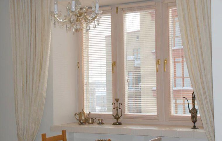 Нередко белые стеклопакеты из древесины ставят на кухнях. Здесь лучше установить вариант, у которого обе створки раскрываются: так помещение будет проще проветривать, чтобы избавиться от запахов приготовленной пищи, охладить пространство после длительной работы плиты и других электроприборов.