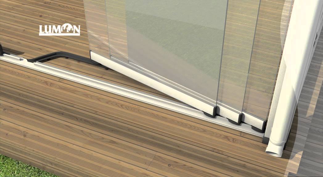 Система lumon – одна из пионеров внедрения финских технологий на отечественном рынке. Эта система состоит из верхнего несущего профиля и нижнего, задающего траекторию. Закаленные огнеупорные стекла от 6 до 12 мм крепятся к профилям по одной линии без рам (в привычном понимании) и стоек. Между стеклами есть алюминиевые прокладки с подшипниками и петлями для бесшумного движения окон по направляющим.