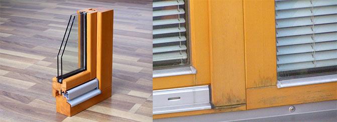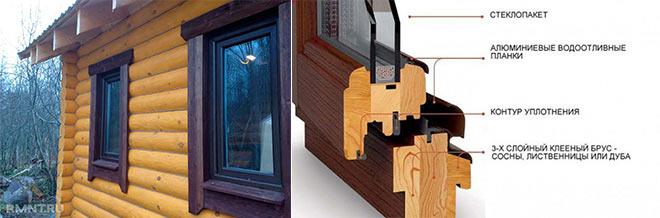 Чтобы сохранить благородный вид и стиль домов из бруса, производители обшивают металлическую несущую часть окна ламелями из дерева. Системы получаются легкими, с внешним натуральным эффектом и стоят на 80% дешевле полностью деревянных. На внутреннем рынке такие изделия пока встречаются редко, так как основа конструкции чаще изготавливается и закупается за рубежом.