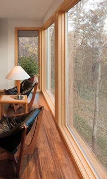 - нет риска разгерметизации. В створчатых окнах разбалансировка конструкции створки или некачественные уплотнители могут быть причиной теплопотерь и сквозняков. У глухого окна по умолчанию нет створок, уплотнителей или дополнительной фурнитуры, поэтому нет риска потерь тепла помещения. Поэтому глухое деревянное окно со стеклопакетом из качественной древесины, с применением современных систем изготовления – это залог сохранения тепла помещения.