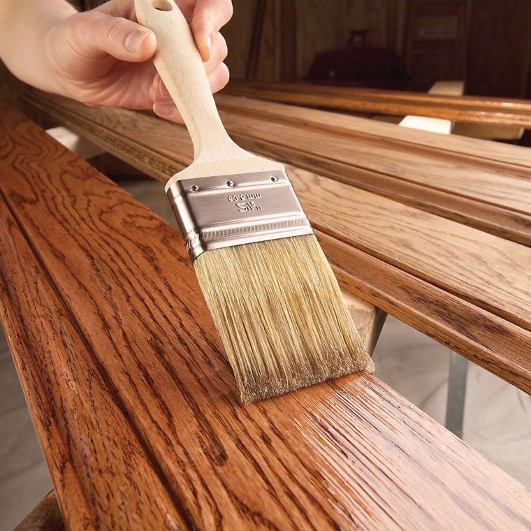 Наиболее устойчивыми считаются полиуретановые эмали, обеспечивающие надежное покрытие для деревянных каркасов. Но состав отличается высокой ценой, поэтому пользуются спросом в массовом использовании бюджетные акриловые красители. Материал быстро сохнет, прочен и стоек к механическим воздействиям. Акрил можно разводить водой до нужного оттенка тонирования.