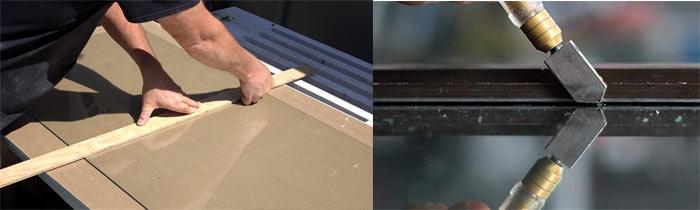 Прежде чем начать резать стекло, нужно определиться с нужными размерами. С помощью рулетки измеряют расстояние между пазами на раме. Так как во время температурных перепадов дерево имеет свойство сжиматься и расширятся, стекло вырезают на 4 мм меньше получившихся цифр. Иначе при сжатии оно может лопнуть. Процесс нарезки и установки стекла: