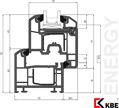 КБЕ Энергия — трехкамерный профиль. Среди продукции компании есть рамы с пятью и меньше воздушных камер. Толщина профиля меняется в зависимости от наличия воздушных тоннелей.