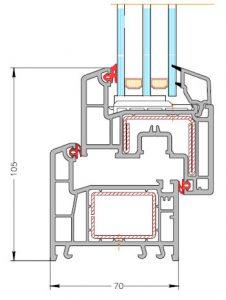Характерная особенность этой модели – низкопрофильная створка. Узкий профиль (его высота уменьшена) Kaleva Vita пропускает больше света в помещение, визуально увеличивает пространство. Количество пластика также сокращено в пользу стекла в створке Калева Вита. Увеличение прозрачной площади проема означает улучшение светопропускной способности на 12,2 %. По этому показателю Kaleva Vita превосходит аналогичные конструкции с большей высотой профиля.
