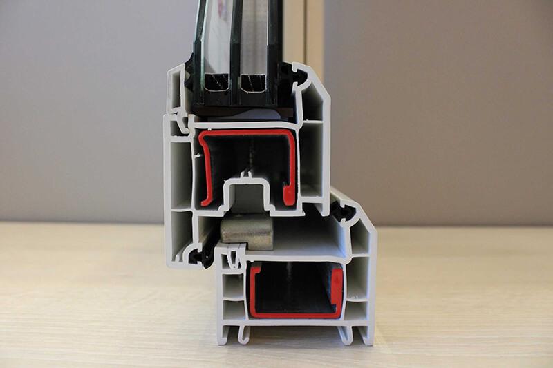Самые тихие 6-ти камерные рамы из линейки Rehau в Москве, при монтажной глубине 86 мм обеспечивает теплоизоляцию до 0,95 м2°C/Вт. Ограничитель конвекции с уплотнителями снижает потери тепла, а скошенные или скруглённые наплавы создают эксклюзивный дизайн, цена от 17,300 тыс. руб./кв. м. Подробнее об этом профиле в нашей отдельной статье.