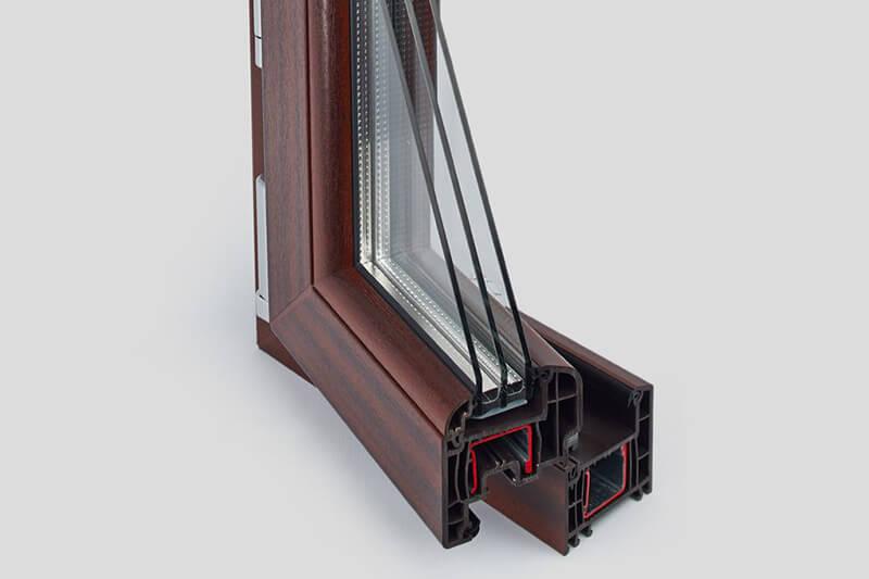Профильная система 70 и 80 мм премиум сегмента имеет 5 и 6 воздушных камер, округлые и скошенные штапики. Окна поставляются с двухкамерным стеклопакетом 41 мм со стеклами 4–6 мм, охватывают более 200 вариантов дизайна, подходят для окон энергоэффективных домов, квартир, входных групп, цена начинается от 15,2 тыс. руб. Подробнее об этом профиле в нашей отдельной статье.