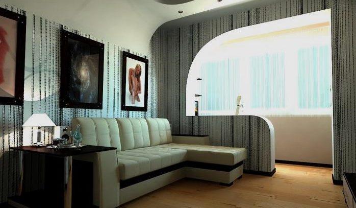 - Совмещение. Проводится с целью расширения пространства жилой комнаты или кухни. Удаляются все элементы, не имеющие несущей функции. После монтажа оконной системы выполняется утеплителем утепление балкона. Выбираются профили и стеклопакеты с максимальными изоляционными качествами.
