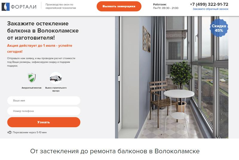 На балкон в Волоколамске можно заказать окна из ПВХ от Рехау или алюминия от Provedal. Для снижения стоимости компания заключила прямые договоры и отказалась от рекламы. Есть большое количество акций. Замерщик приезжает бесплатно. Оплата любым удобным способом, при рассрочке до 6 месяцев предоплата не требуется. Предоставляет гарантию в зависимости от вида работ.