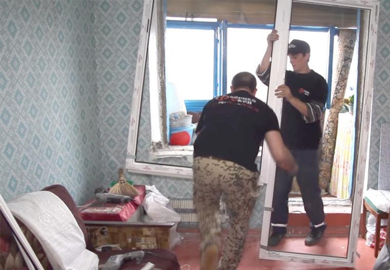 - Убирают балконную дверь и все оконные створки, которые снимаются с петель.