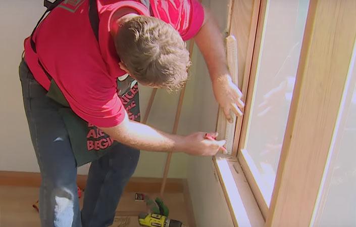 После монтажа оконной рамы производится установка подоконника и откосов вокруг окна. Подоконник при монтаже заводят под раму, подставив снизу несколько брусков. С помощью уровня выравнивают его положение и вынимают для обработки поверхности под ним монтажной пеной. Затем подоконник вставляют на место, заполняя герметиком пустоты под ним. Для фиксации положения ставят груз и оставляют его на сутки.