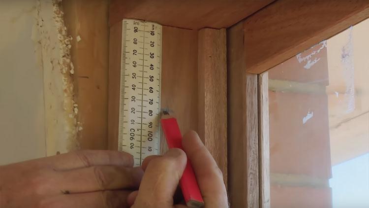 Измерение начинается с определения ширины наружной части проема — расстояния между четвертями. При наличии старого окна нужно его открыть и произвести замеры рулеткой снаружи. Замер ширины внутреннего проема — определение расстояния между откосами. Затем вычисляем разницу этих замеров.