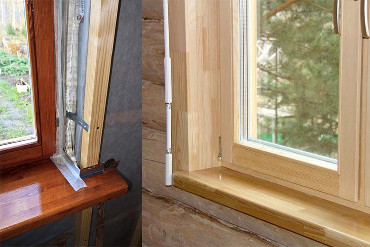 Для хорошего плотника не составит сложности изготовление и установка деревянных окон своими руками в доме из сруба. Особенностью является усадка строений из бруса, продолжительность которой около года и составляет примерно 200 мм. Исключение — дома из сухого клееного бруса, их усадка около 20 мм. Сухой вариант избы (кирпичного или блочного дома) позволяет устанавливать рамы на колодки.