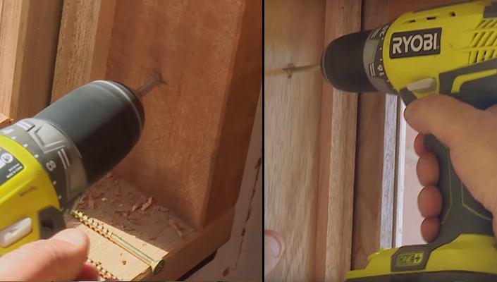 Раму устанавливают в оконном проеме при помощи не до конца закрученных саморезов и выравнивают ее положение небольшими брусочками. Затем внутри этих отверстий помечают места расположения дюбелей в оконном проеме. Раму снова снимают, чтобы просверлить в проеме отверстия для дюбелей, учитывая их длину и диаметр.