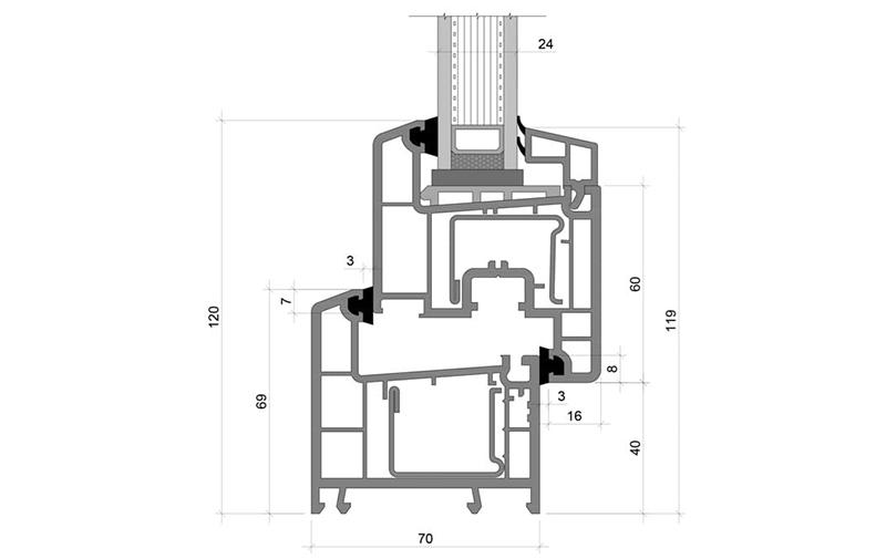 Профиль устойчив к деформациям за счёт толщины стенок 3 мм. Жесткая конструкция из пластика и армирования выдерживает установку стеклопакетов разного размера до 40 мм. При установке 2-х камерного стеклопакета коэффициент теплозащиты составит 0,78 м²°С/Вт. Тот же показатель у Rehau Euro начинается от 0,64 м²°С/Вт. Производители предусмотрели 3 варианта профиля с оригинальным оформлением створок: