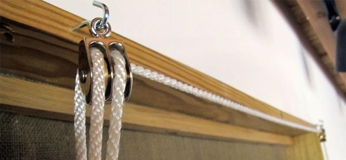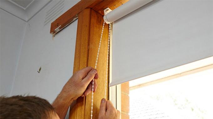 - При помощи цепочного шнура, закрепленного с любой стороны вала, полотно вручную поднимают и опускают, фиксируют в нужном положении.