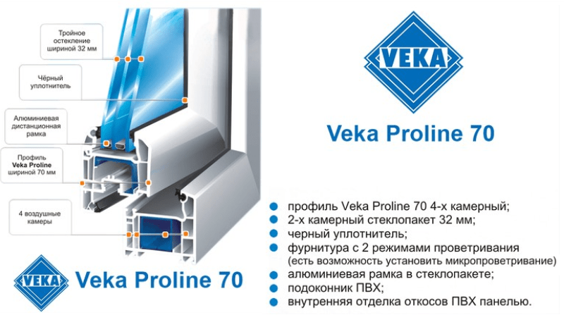 Каждый из них изготавливает качественные профильные системы бюджетного сегмента для оконных проёмов домов, квартир. У Рехау это 3-х камерные профили Blitz, Euro-Design с монтажной глубиной 60 мм и SIB-Design 70 мм с коэффициентом теплоизоляции 0,64–0,71м²°C/Вт. Бюджетный вариант окон VEKA – 3-х камерный узкий (58 мм) профиль Euroline и 4-х камерные системы Proline со схожими параметрами теплоизоляции.